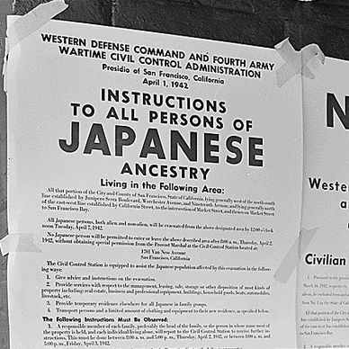 Executive Order 9066 posted outside a building.